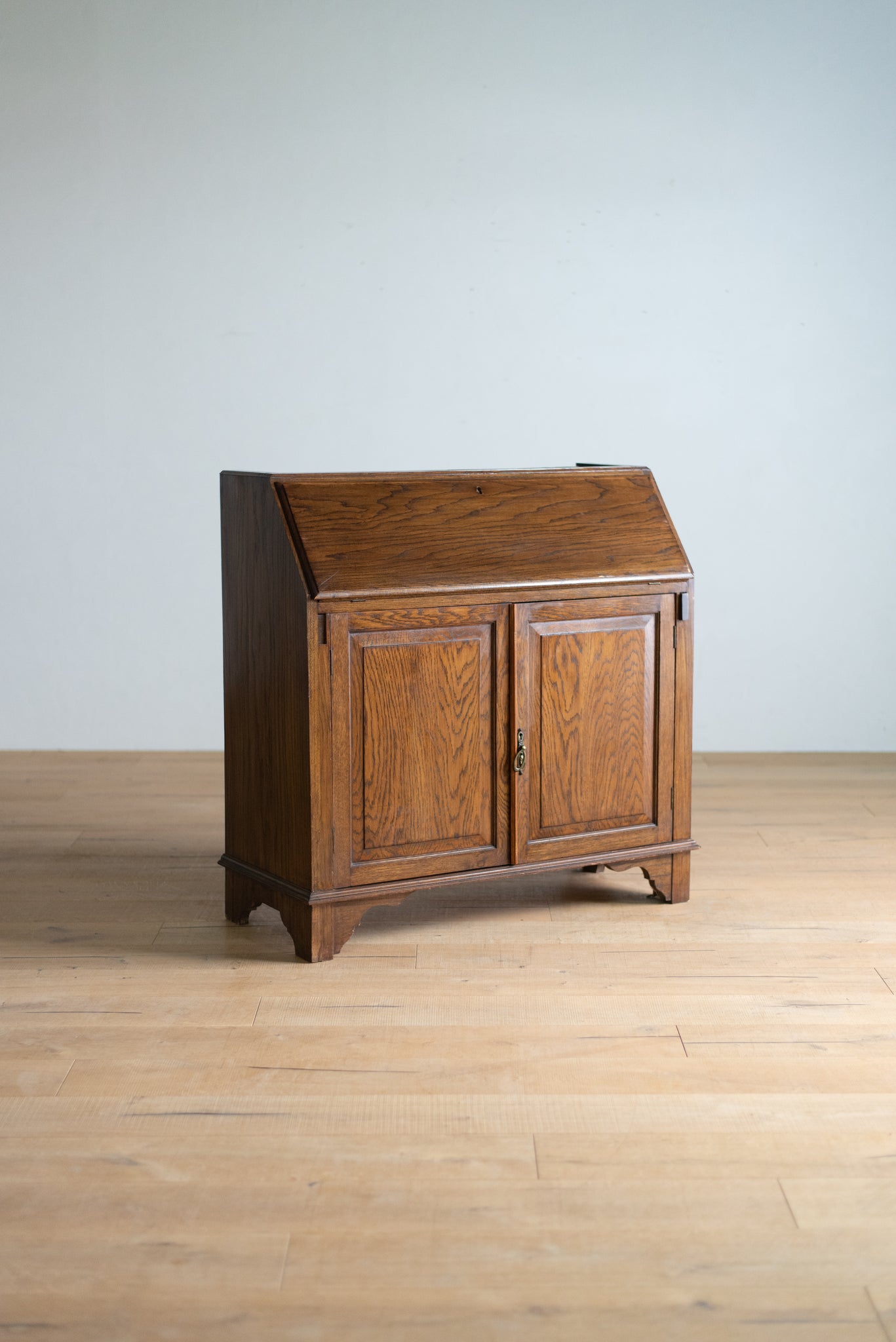 1930-1950年代に製作された、美しいオーク材のビューローデスクです。シンプルさと上品さのバランスが絶妙で、甘さを抑えつつも古めかしさを感じさせない、凛とした存在感を放ちます。